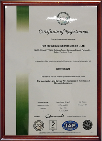 Fuzhou weixin electronics co., LTD is a manufacturer specializing in the design and production of automotive wiring harness, motor wiring harness, industrial control equipment wiring harness and electronic equipment wiring harness. Products are widely used in the automotive industry, industrial automation control system, communication equipment, micro-motor, display and other products of the connection field. In June the company was founded in 2008, is located in the covered hills, cangshan district, fuzhou city of fujian province north garden road 112, covers an area of 1800 square meters, the company has passed ISO9001:2015 quality management system certification, the company has a new automated production equipment and computer programmed wire testing equipment, perfect ERP management system, with the cost control and provide the best solution for the target service to customers. The company adheres to the enterprise tenet of "survival by quality, development by science and technology", and has scientific production management system and strict quality assurance system to promote product quality, after-sales service and cost performance. We d on high efficiency, high quality, high cost performance,